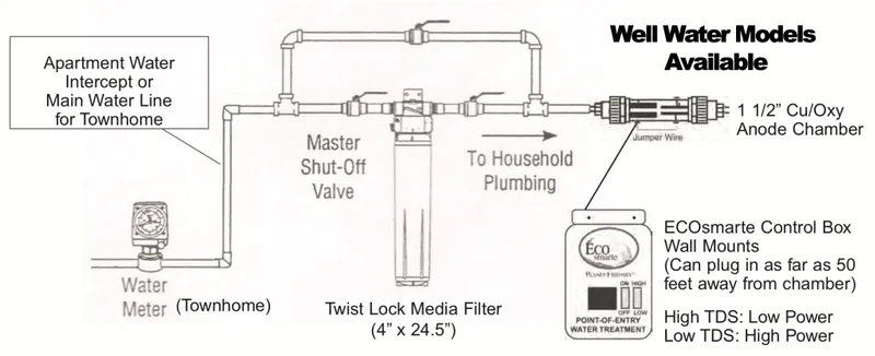 Hệ thống nước cabin, nhà phố và căn hộ của chúng tôi cung cấp nước chất lượng cao cho mọi vòi, cả trong nhà và ngoài trời. Các hệ thống này rất dễ lắp đặt và không cần rửa ngược và không có cống. Loại bỏ hoàn toàn florua, tất cả VOC và bảy trihalomethane với khối oxy và carbon độc quyền của chúng tôi. Bộ lọc dễ dàng được thay thế bằng bộ lọc “vít”.
