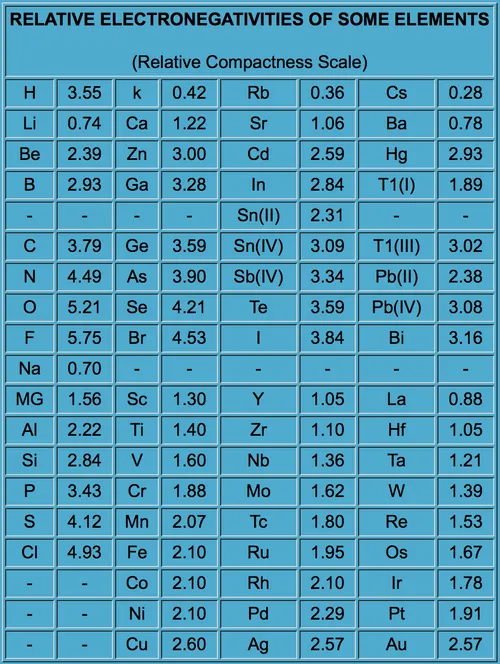 Mức độ âm điện hoặc mức độ mà một nguyên tử giữ các electron hóa trị so với các nguyên tử khác của phân tử hóa học. Sự khác biệt tại thời điểm này giống như so sánh táo với táo: 1. Hai quả táo giống hệt nhau có kích thước và hình thức giống hệt nhau nhưng loại này lớn hơn cây kia vì mật độ lớn hơn. 2. Hai quả táo có kích thước không bằng nhau, mỗi quả có trọng lượng như nhau do mật độ khác nhau. Độ âm điện là yếu tố biến đổi cho phép một ion có giá trị biểu kiến bằng nhau thay thế ion khác.